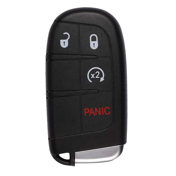 Autel programmable 4-button Chrysler-, Dodge-style IKEY. Unlock, Lock, Remote Start, Panic. Use the Autel MaxiIM KM100 to program IKEY. Include Chrysler-, Dodge-type Rescue Blade. Meets or exceeds industry and regulatory standards. Compatible with vehicle systems using 315/415 MHz and 868/915 MHz. Capable of Ultra-Long Range (40 meters/130 feet) frequency transmission.